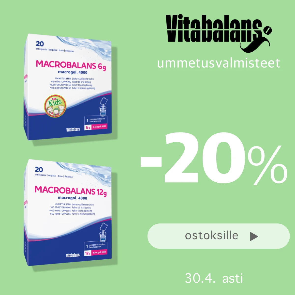 Nettiapteekin supertarjoukset! Rajoitettuja eriä tuotteista, joilla voi olla tavallista lyhyempi kestoaika tai loppuvia eriä. Tuotteet saatavilla niin kauan kuin erää riittää.
