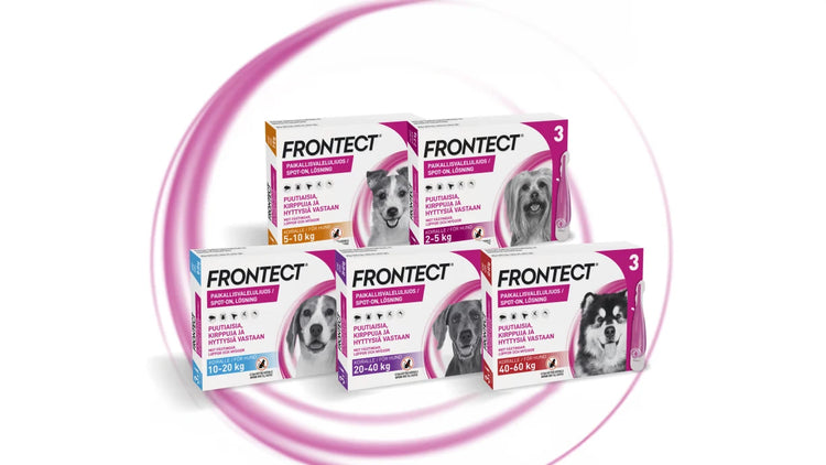 Frontect on 3-tehoinen punkkilääke, joka sisältää kaksi vaikuttavaa ainetta punkkien ja ulkoloisten torjumiseen. Fiproniili ja permetriini antavat kattavan suojan koirallesi ulkoloisia vastaan: