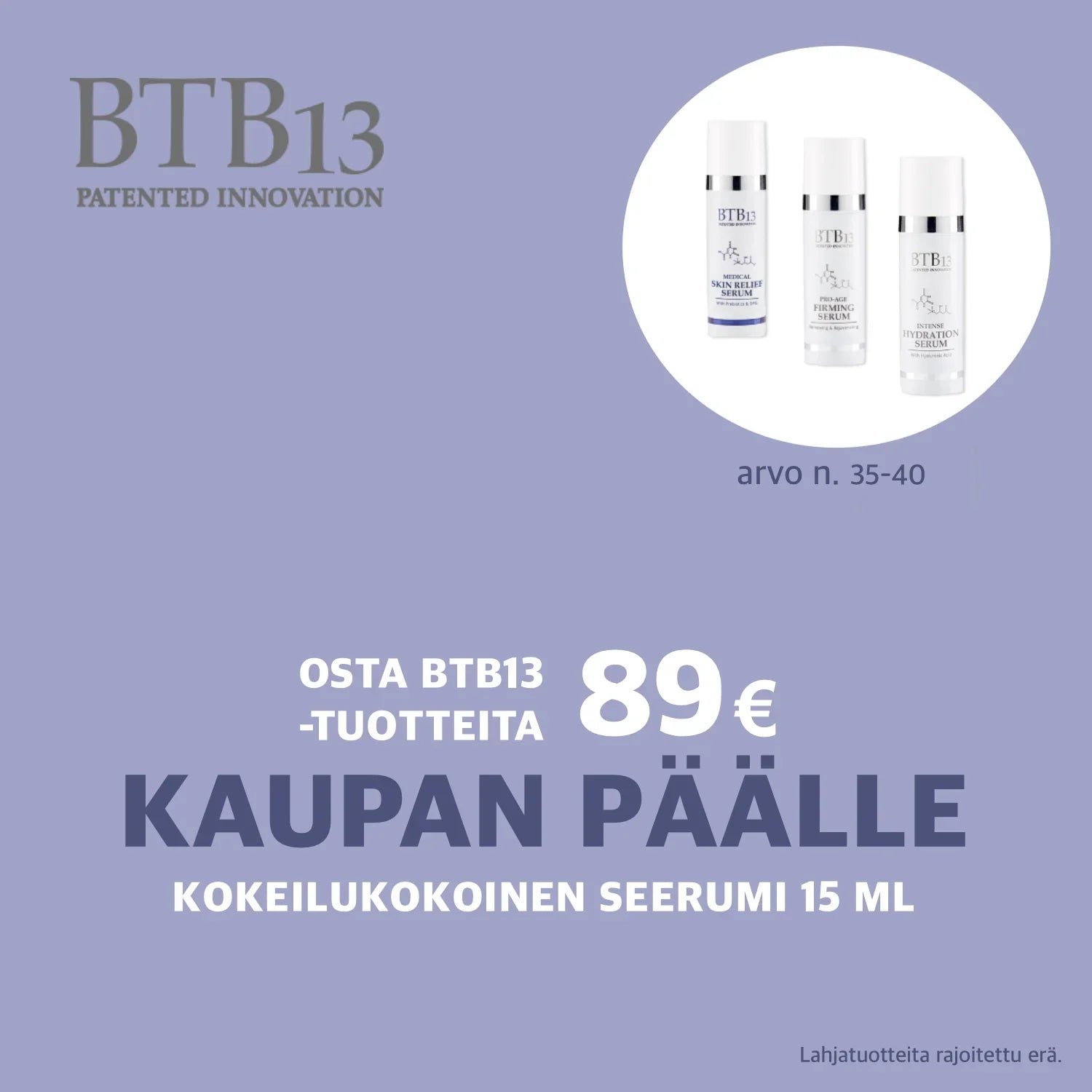 BTB13 -20% – Osta 89 €, saat lahjatuotteen kaupan päälle