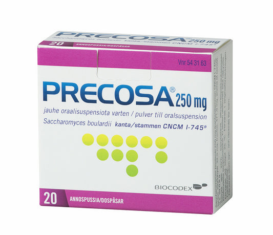 PRECOSA 250 mg jauhe oraalisuspensiota varten annospussi