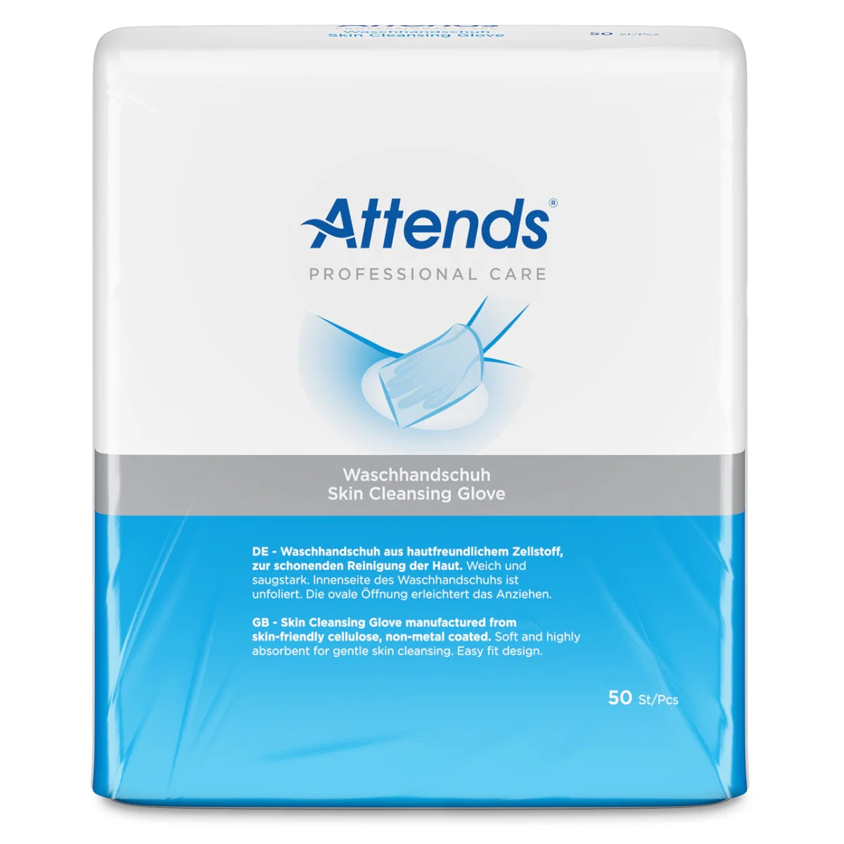 Attends Professional Care Cleansing Gloves on pehmeä ja imukykyinen kertakäyttöinen pesukinnas, joka soveltuu ihon päivittäiseen puhdistukseen erityisesti vuodepotilaille tai inkontinenssipotilaille. Pesukintaassa on kätevä ovaalinmuotoinen aukko, joka tekee käytöstä helppoa ja hygieenistä.