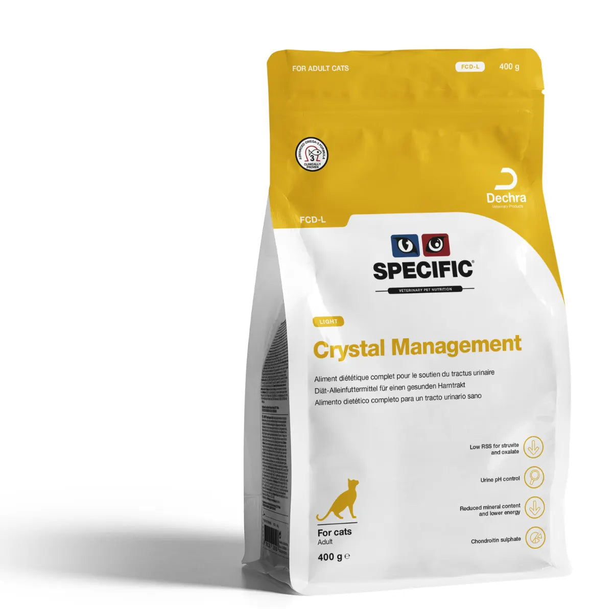 SPECIFIC™ Crystal Management Light on täydellinen dieettiruoka ylipainoisille kissoille tai kissoille, joilla on taipumusta painonnousuun. Se tukee virtsateiden terveyttä ja auttaa ehkäisemään struviittikivien uusiutumista ja uusien kiteiden muodostumista.