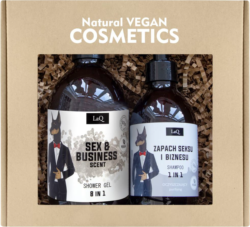 Lahjapakkaus miehelle. LaQ on vegaanista luonnonkosmetiikkaa - yhdistelmä vegaanisia ja luonnollisia ainesosia, upeita valmisteita, kauniita tuoksuja, ihania värejä ja huumorintajua.