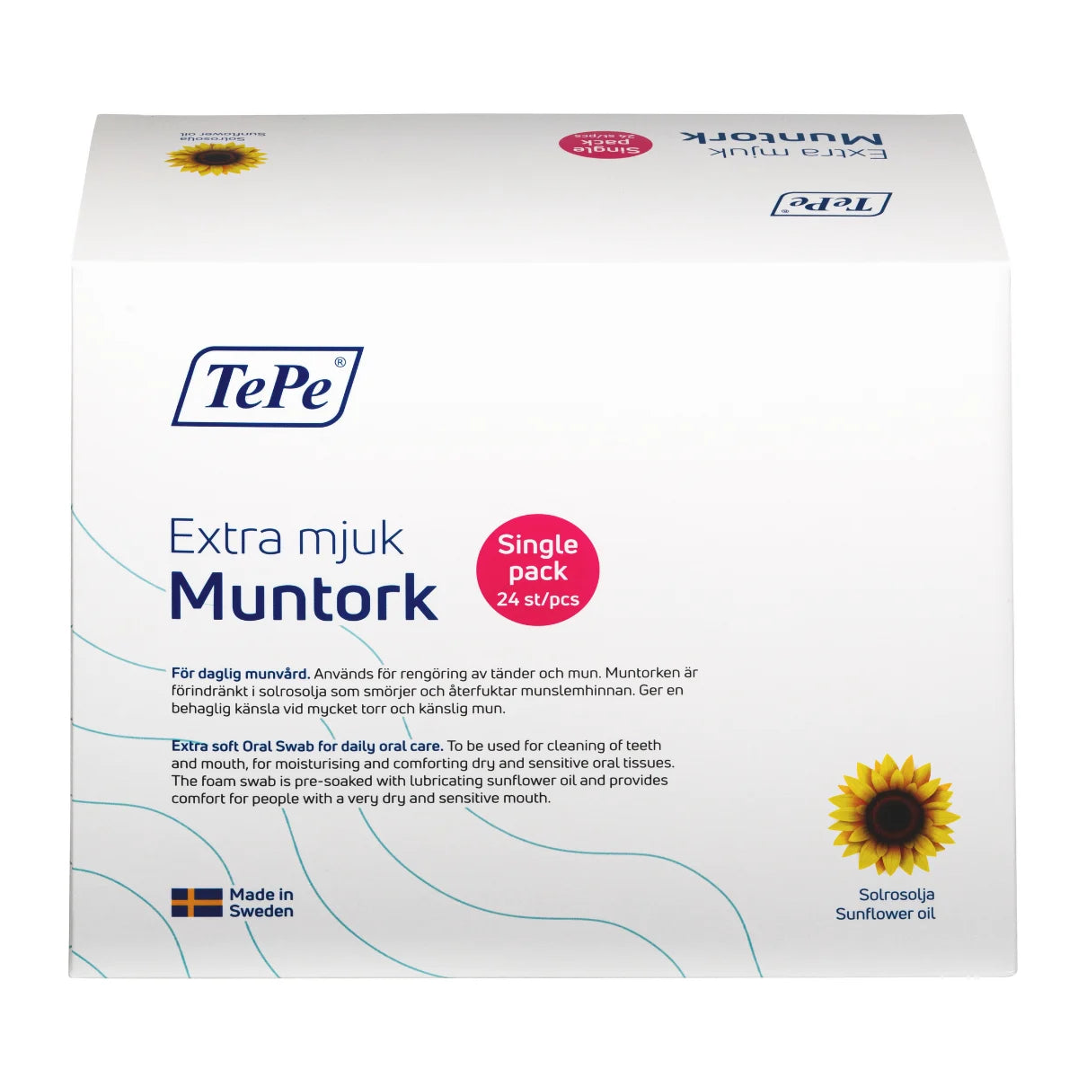 TePe Voiteleva suunpuhdistustikku on suunniteltu hellävaraiseen suunhoitoon ja kosteutukseen, erityisesti kuivalle ja herkälle suun limakalvolle. Esiliotettu auringonkukkaöljyyn, joka voitelee suun luonnollisesti – ilman maku- tai lisäaineita.